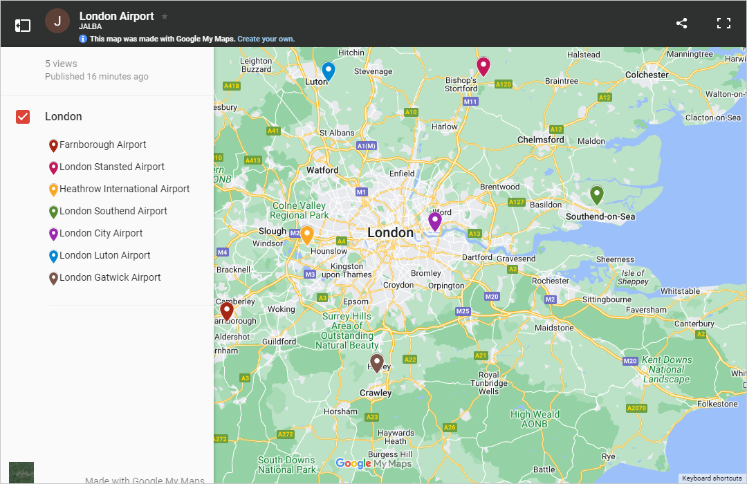 - Farnborough Airport (EGLF) *Recommended for private jet