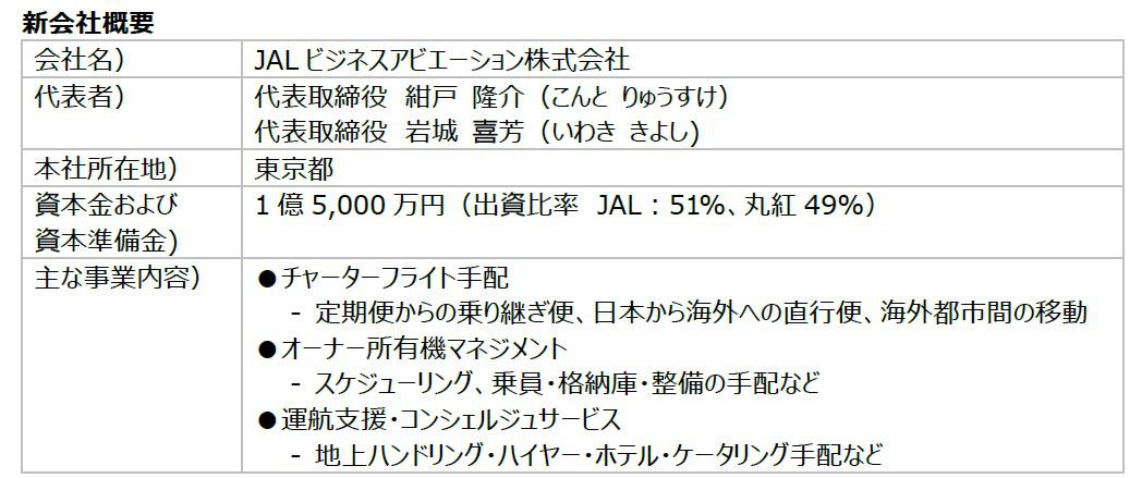 日本航空株式会社(本社:東京都品川区、代表取締役社長:赤坂祐二、以下「JAL」)と、丸紅株式会社(本社:東京都中央区、代表取締役社長:國分文也、以下「丸紅」)は、日本のビジネスジェットの需要拡大に応えるべく、チャーターフライト手配、オーナーさまが所有する機体のマネジメント、日本を発着するビジネスジェット向けに運航支援・コンシェルジュサービスなどを提供する新会社を設立しました。2019年春よりサービスを開始予定です。